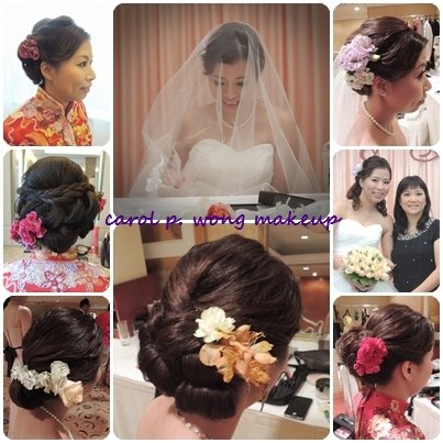 是日客人總共有六款造型,有褂頭、註冊、席前、晚宴進場、敬酒及送客。